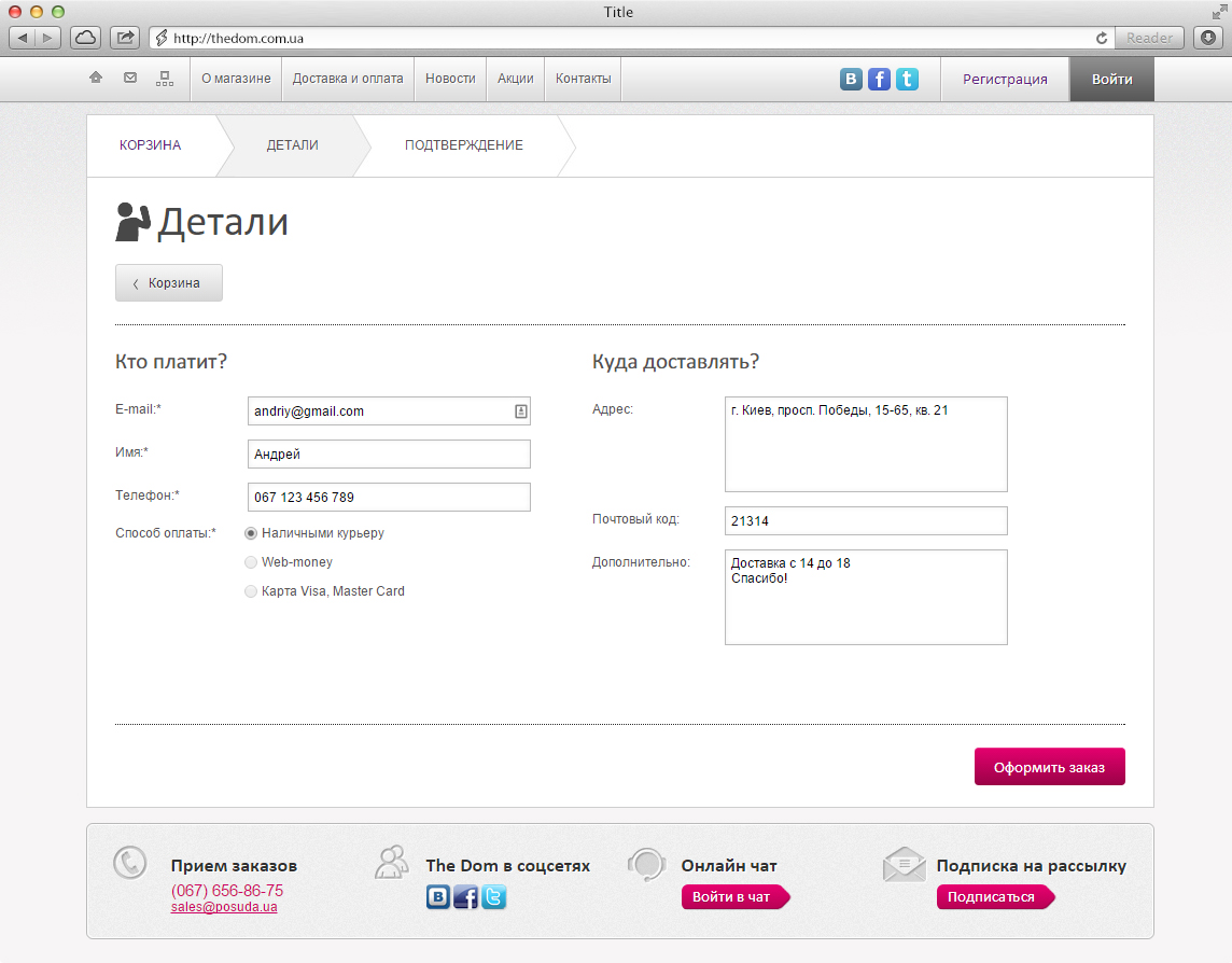 - Personal user account with editable data and order history